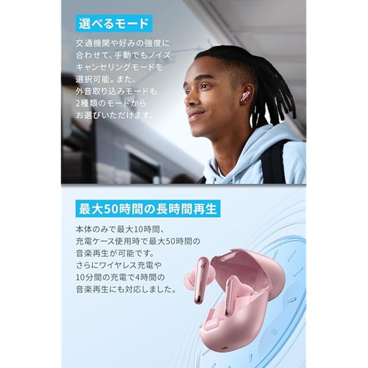 Anker Soundcore Liberty 4 NC (Blueooth 5.3)【完全ワイヤレスイヤホン/ウルトラノイズキャンセリング 3.0 / ワイヤレス充電/マルチポイント接続/外音取り込み / 最大50時間再生 / ハイレゾ対応 / IPX4防水規格 / PSE技術基準適合】ピンク