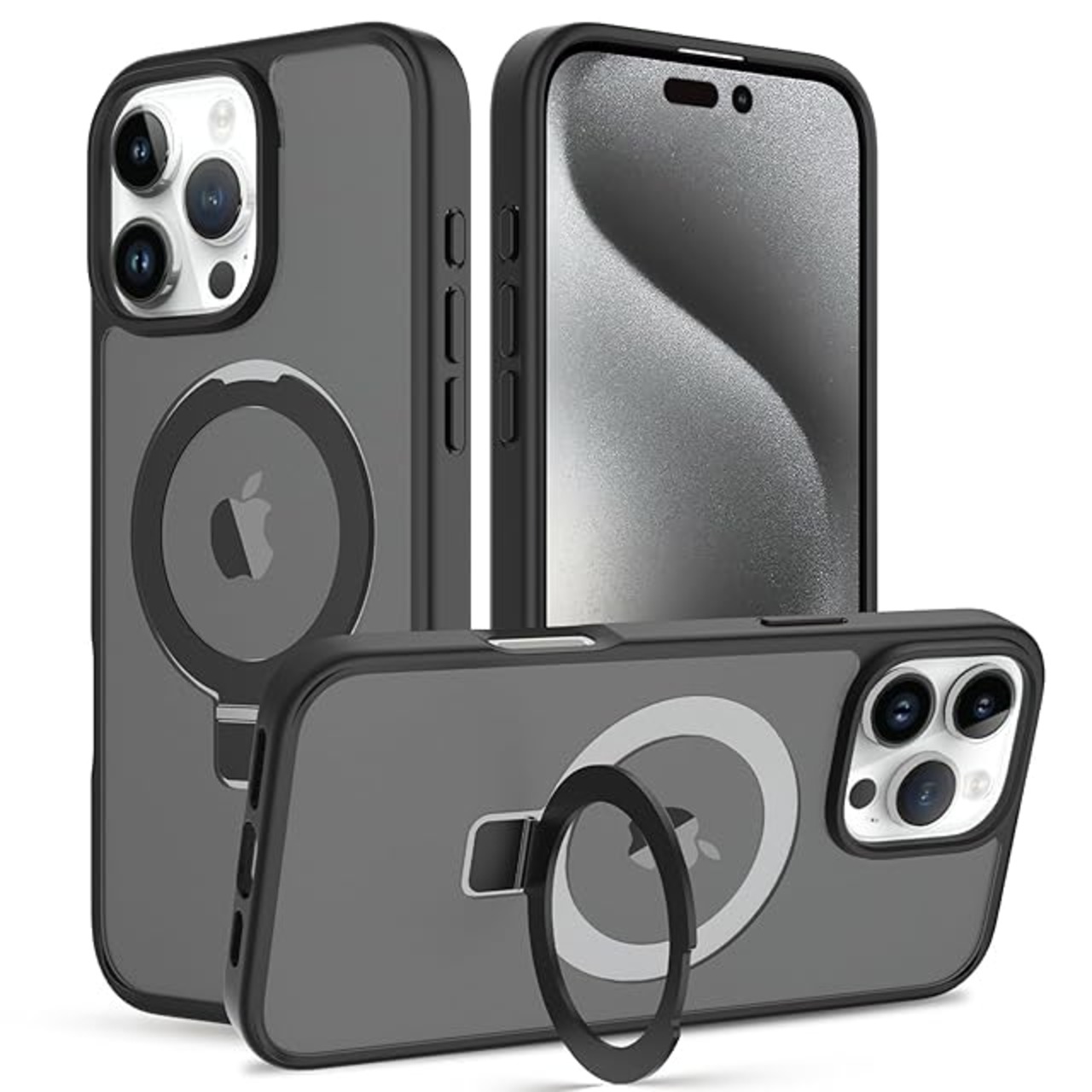 商品名:iPhone 16 Pro Max ケース Magsafe対応 スタンド機能 耐衝撃 半透明 マット感 隠し収納式スタンド 米軍MIL規格 ストラップホール付き ワイヤレス充電対応 スマホカバー EUMADOVE (ブラックホルダー, IPhone 16 Pro max)