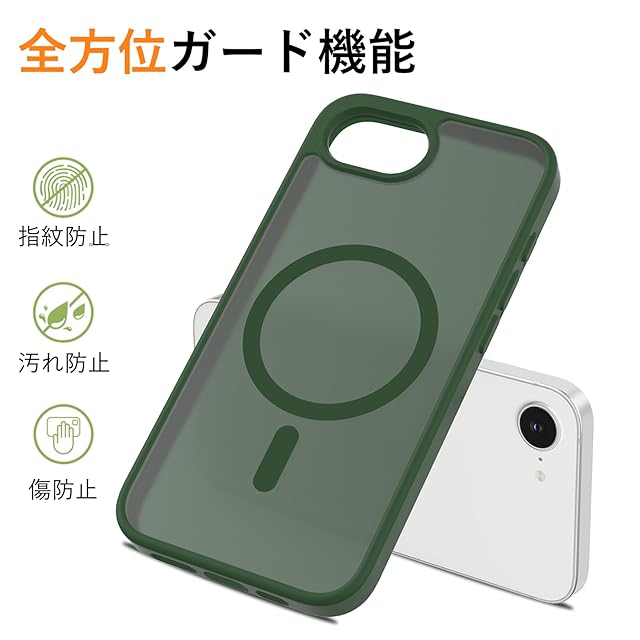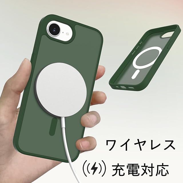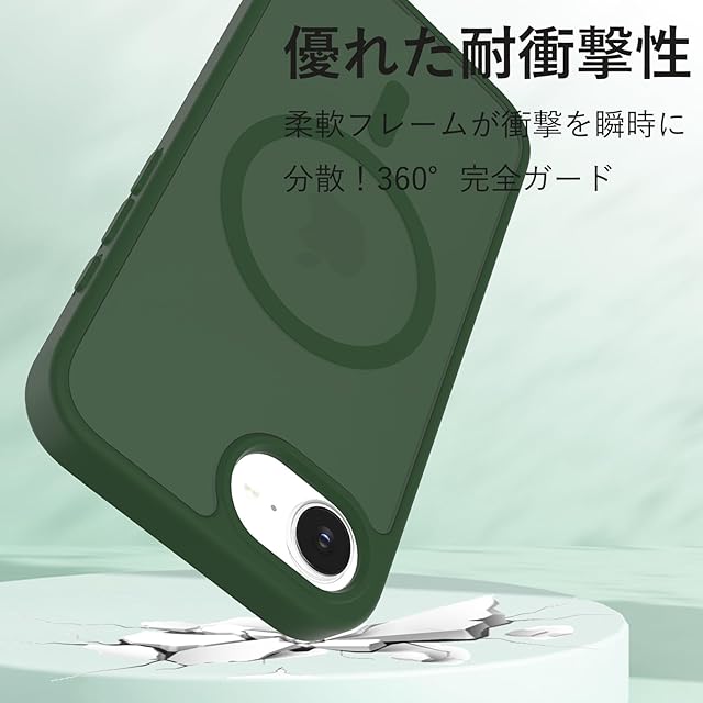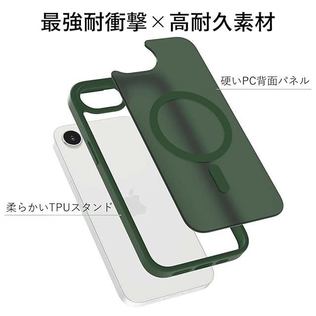 商品名:iPhone 16e ケース MagSafe対応 耐衝撃 半透明 マグネット搭載 軽量 薄型 PC 傷防止 滑り止め 米軍MIL規格 ワイアレス充電対応 スマホカバー EUMADOVE (ダークグリーン, iPhone 16e)