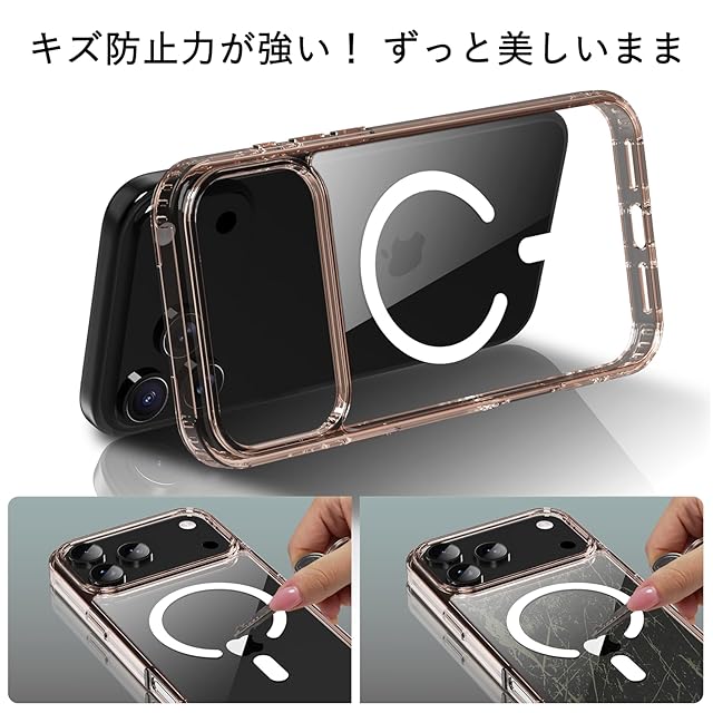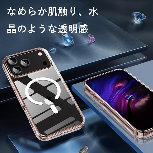 【適用型番】iPhone 17 Proにぴったり。精密加工によるスムーズな装着としっくりくるフィット感。上品な佇まいで、長時間の使用も快適です。ご購入前に必ずお使いのスマートフォン機種をご確認ください【透明な美学、優雅さおよび贅沢】iPhone 17 Proの美しさをストレートに引き立てる、透明ストリームライン設計。高い透明度と優れた耐キズ性で、日常の使用でも美しさをキープします【米軍MIL規格・高耐衝撃性】このスマホケースは、世界的に有名な米国軍事規格を取得しており、高弾性の衝撃吸収バンパーと頑丈なポリカーボネート素材を組み合わせた設計で、優れたバランスを実現しています。優れた耐衝撃性能を備え、あらゆる方向からあなたのスマホをしっかりと保護します【超強力な磁力】強力磁石を内蔵し、MagSafe充電エリアに正確に位置合わせできるため、素早く快適なワイヤレス充電を実現。差し込み不要の簡単充電が可能です。ワイヤレス充電器、カースタンド、スタンド、マグネットリング、カードホルダーなど、多彩なMagSafeアクセサリーにも対応しています【カスタマーサービス】ユーザー体験を常に最優先とするのが当社のブランド理念です、お客様の安心を最優先に。万一製品に不具合がございましたら、到着後30日間以内にご連絡ください。24時間体制で返品・交換を承ります
