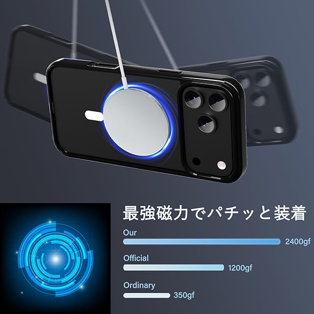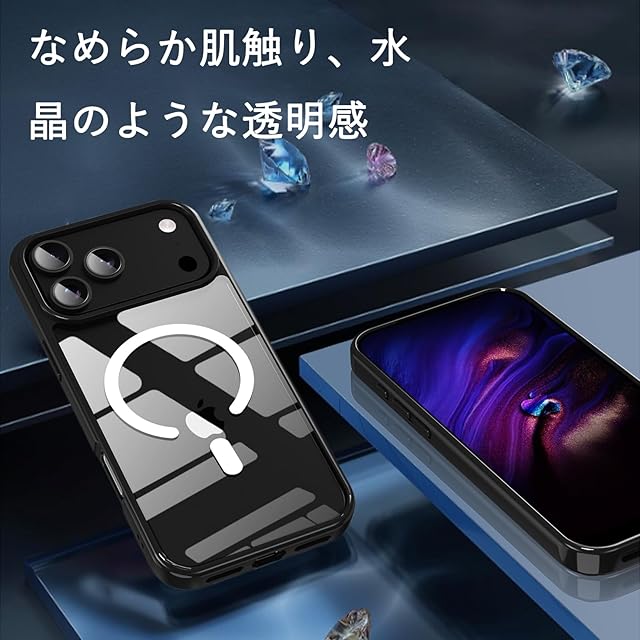 【適用型番】iPhone 17 Proにぴったり。精密加工によるスムーズな装着としっくりくるフィット感。上品な佇まいで、長時間の使用も快適です。ご購入前に必ずお使いのスマートフォン機種をご確認ください【透明な美学、優雅さおよび贅沢】iPhone 17 Proの美しさをストレートに引き立てる、透明ストリームライン設計。高い透明度と優れた耐キズ性で、日常の使用でも美しさをキープします【米軍MIL規格・高耐衝撃性】このスマホケースは、世界的に有名な米国軍事規格を取得しており、高弾性の衝撃吸収バンパーと頑丈なポリカーボネート素材を組み合わせた設計で、優れたバランスを実現しています。優れた耐衝撃性能を備え、あらゆる方向からあなたのスマホをしっかりと保護します【超強力な磁力】強力磁石を内蔵し、MagSafe充電エリアに正確に位置合わせできるため、素早く快適なワイヤレス充電を実現。差し込み不要の簡単充電が可能です。ワイヤレス充電器、カースタンド、スタンド、マグネットリング、カードホルダーなど、多彩なMagSafeアクセサリーにも対応しています【カスタマーサービス】ユーザー体験を常に最優先とするのが当社のブランド理念です、お客様の安心を最優先に。万一製品に不具合がございましたら、到着後30日間以内にご連絡ください。24時間体制で返品・交換を承ります
