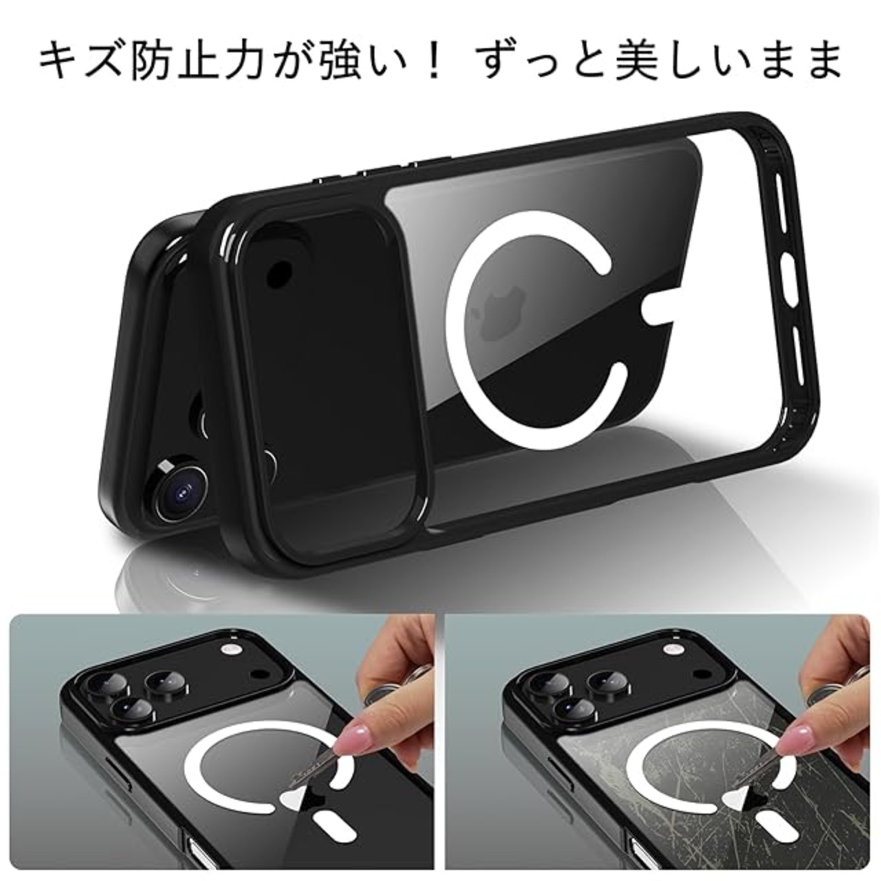 商品名:iPhone 17 Pro 用 ケース クリア MagSafe対応 カメラ保護 耐衝撃 マグネット搭載 エアガードコーナー 薄型 黄変防止 滑り止め 3倍米軍MIL規格 アイフォン17 Pro 対応(6.3インチ)スマホカバー EUMADOVE (ブラック傷防止, iPhone 17 Pro)