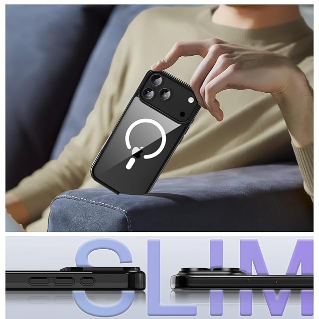 iPhone 17 Pro 用 ケース クリア MagSafe対応 カメラ保護 耐衝撃 マグネット搭載 エアガードコーナー 薄型 黄変防止 滑り止め 3倍米軍MIL規格 アイフォン17 Pro 対応(6.3インチ)スマホカバー EUMADOVE (ブラック傷防止, iPhone 17 Pro)