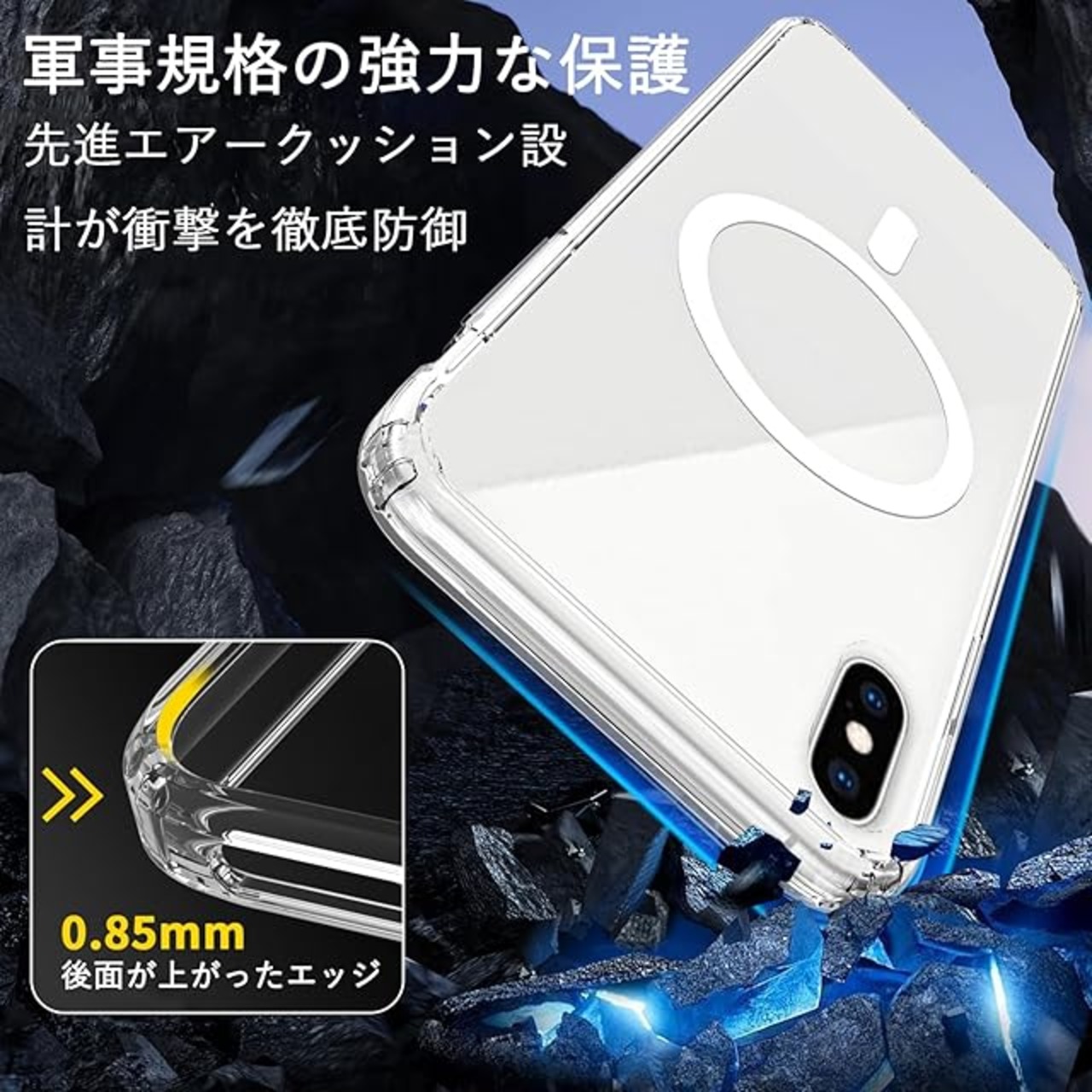 商品名:iPhone XS Max ケース クリア MagSafe対応 pc 耐衝撃 マグネット搭載 傷防止 滑り止め 軽量 薄型 米軍MIL規格 ワイヤレス充電対応 スマホカバー EUMADOVE (ブラック傷防止, iPhone XS Max)