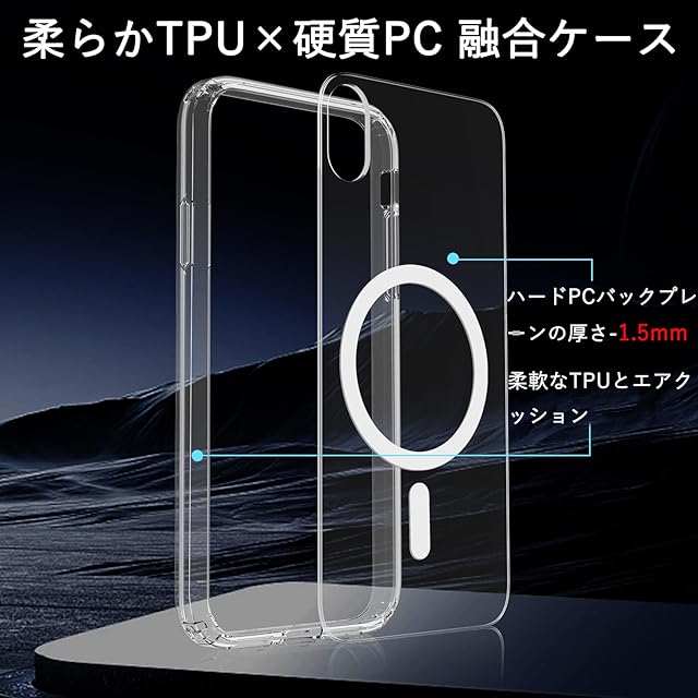 商品名:iPhone xr ケース クリア MagSafe対応 pc 耐衝撃 マグネット搭載 傷防止 滑り止め 軽量 薄型 米軍MIL規格 ワイヤレス充電対応 スマホカバー EUMADOVE (クリア傷防止, iPhone xr)