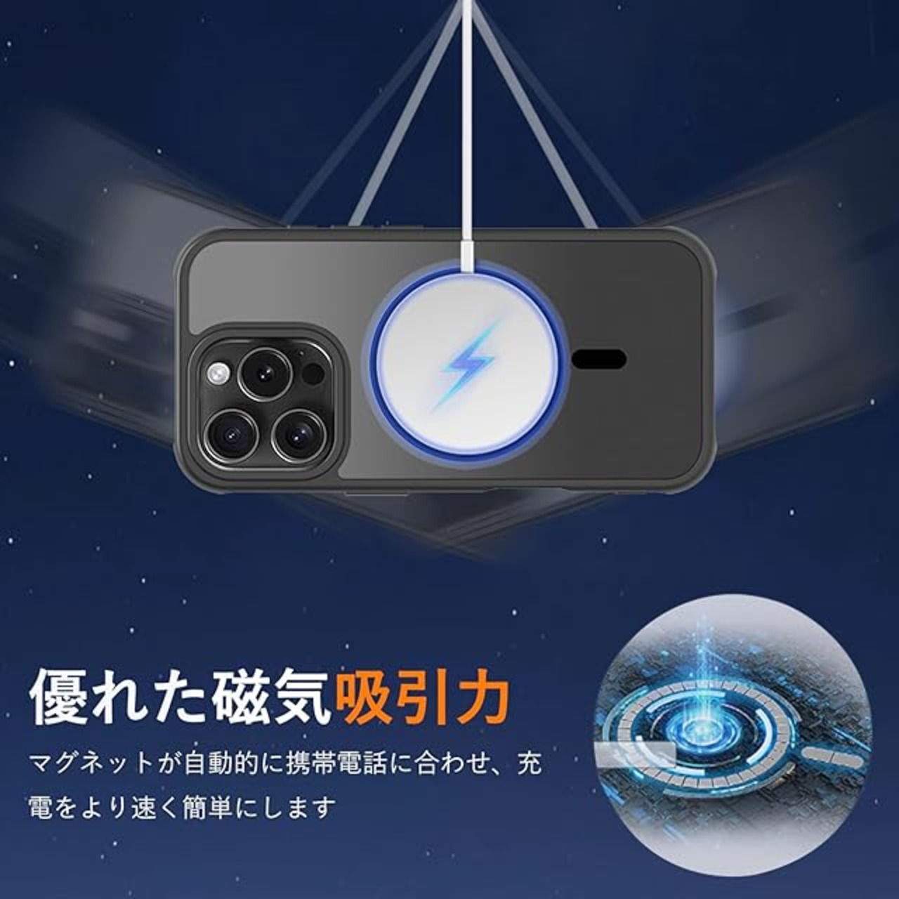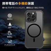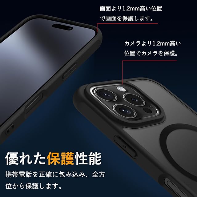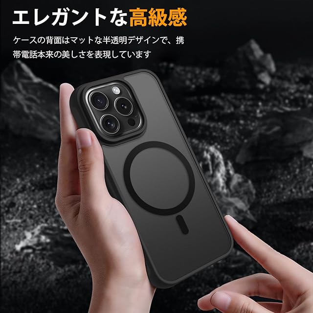 商品名:iPhone 16 Pro ケース 半透明 pc 耐衝撃 Magsafe対応 マット感 軽量 薄型 米軍MIL規格 ストラップホール付き ワイヤレス充電対応 スマホカバー EUMADOVE (ブラック, IPhone 16 Pro)