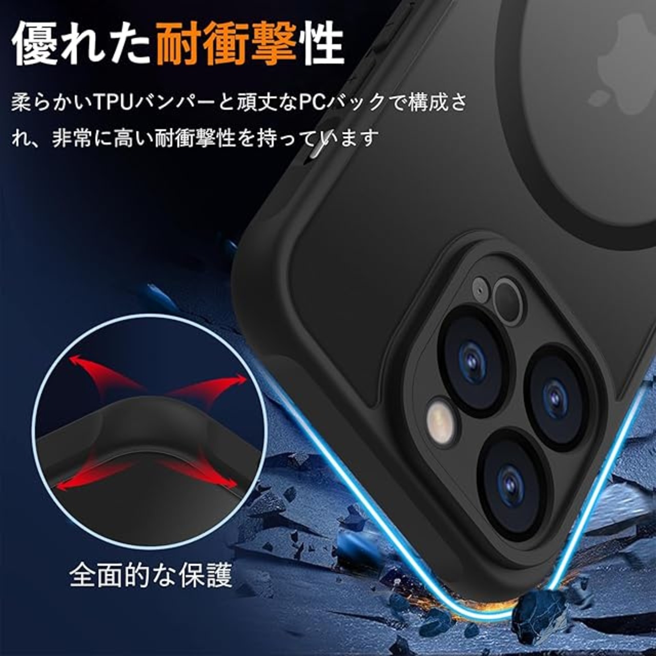 商品名:iPhone 14 Pro Max ケース 半透明 pc 耐衝撃 Magsafe対応 マット感 軽量 薄型 米軍MIL規格 ストラップホール付き ワイヤレス充電対応 スマホカバー EUMADOVE (ブラック, iPhone 14 Pro Max)