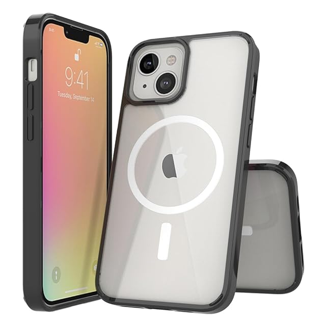 商品名:iPhone 13/14 ケース クリア MagSafe対応 pc 耐衝撃 マグネット搭載 傷防止 滑り止め 軽量 薄型 米軍MIL規格 ワイヤレス充電対応 スマホカバー EUMADOVE (ブラック傷防止, iPhone 13/14)