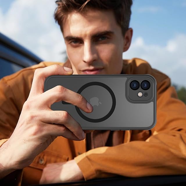 iPhone 12 mini ケース 半透明 pc 耐衝撃 Magsafe対応 マット感 軽量 薄型 米軍MIL規格 ストラップホール付き ワイヤレス充電対応 スマホカバー EUMADOVE (ブラック, iPhone 12 mini)