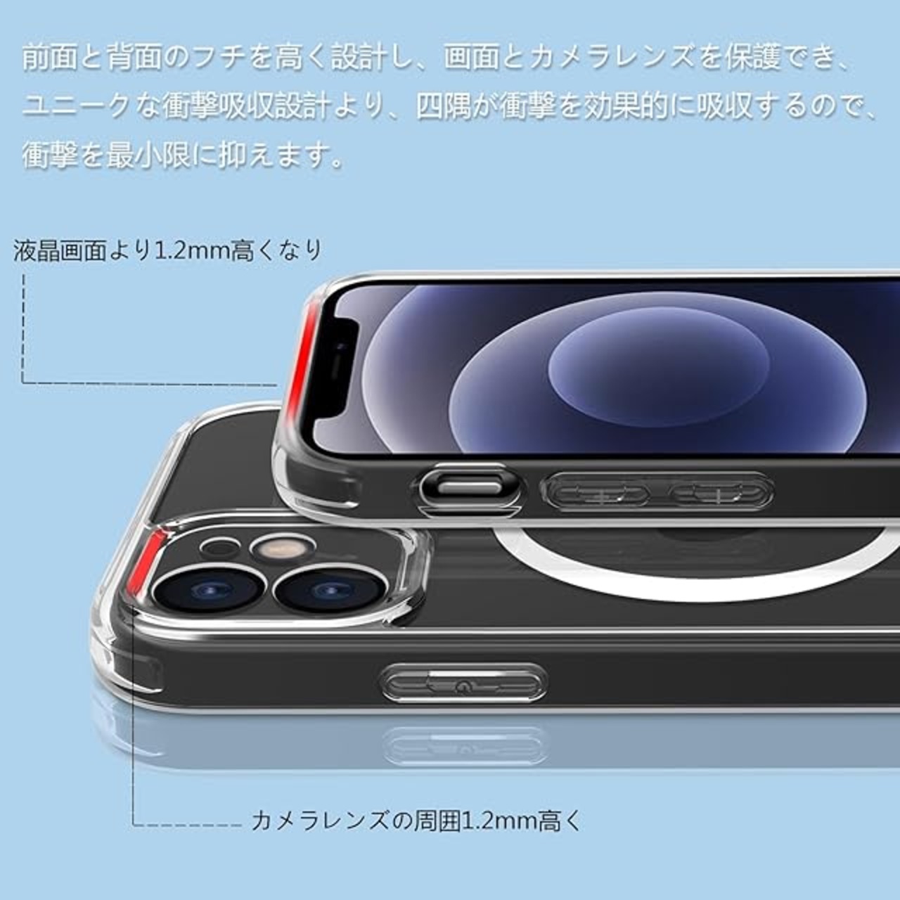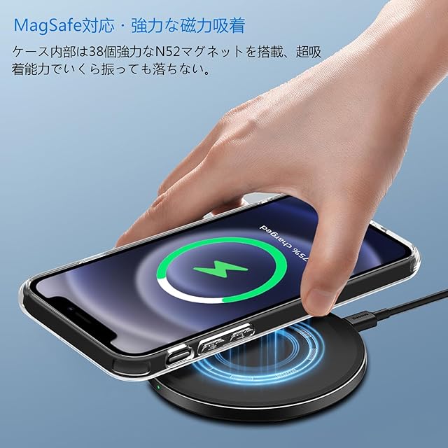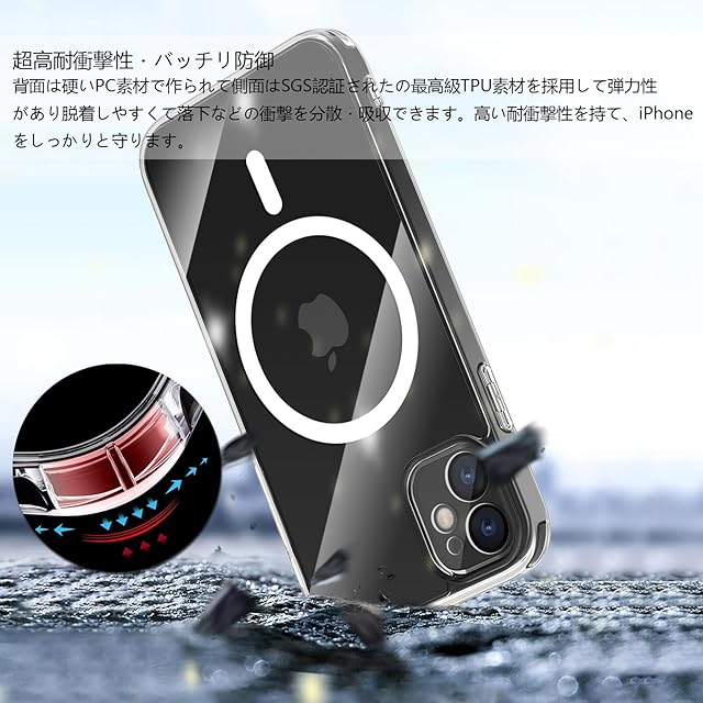 商品名:iPhone 12 ケース クリア pc 耐衝撃 Magsafe対応 軽量 薄型 傷防止 滑り止め 黄ばみなし 指紋防止 米軍MIL規格 ワイヤレス充電対応 スマホカバー EUMADOVE (クリア, iPhone 12)