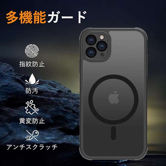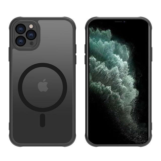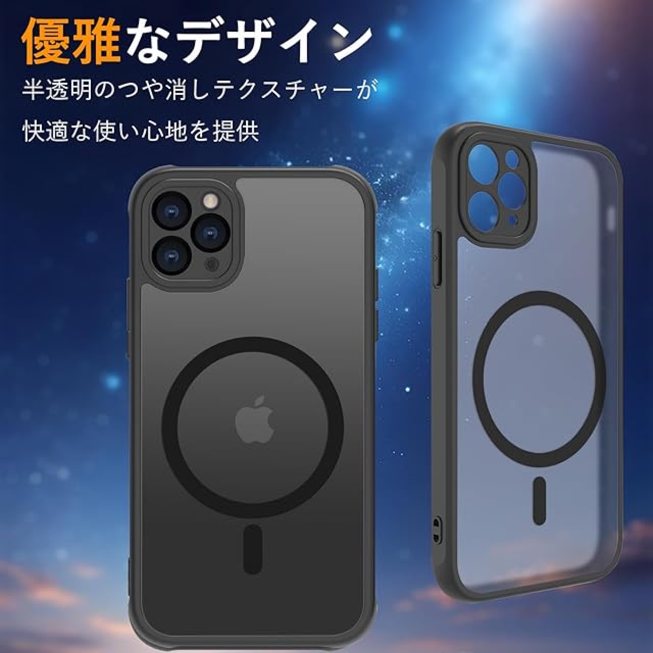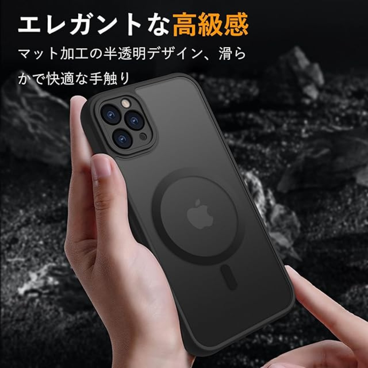 商品名:iPhone 11 Pro Max ケース 半透明 pc 耐衝撃 Magsafe対応 マット感 軽量 薄型 米軍MIL規格 ストラップホール付き ワイヤレス充電対応 スマホカバー EUMADOVE (ブラック, iPhone 11 Pro Max)