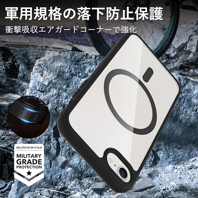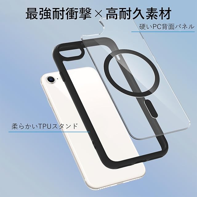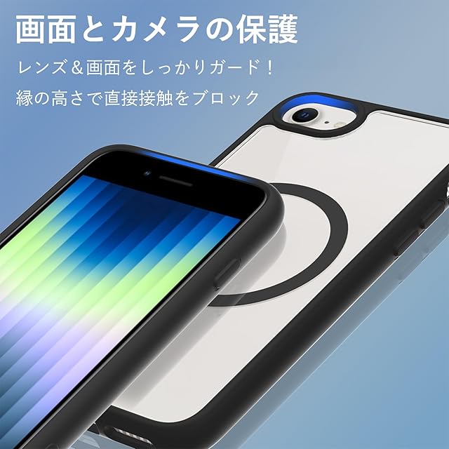 商品名:iPhone SE 第3世代 第2世代 ケース MagSafe対応 耐衝撃 クリア iPhone8 ケース マグネット搭載 PC iPhone7カバー 軽量 薄型 人気 マット感 黄ばみなし 米軍MIL規格 ワイアレス充電対応 EUMADOVE (黒色の傷防止, iPhone se se2 se3 8 7)
