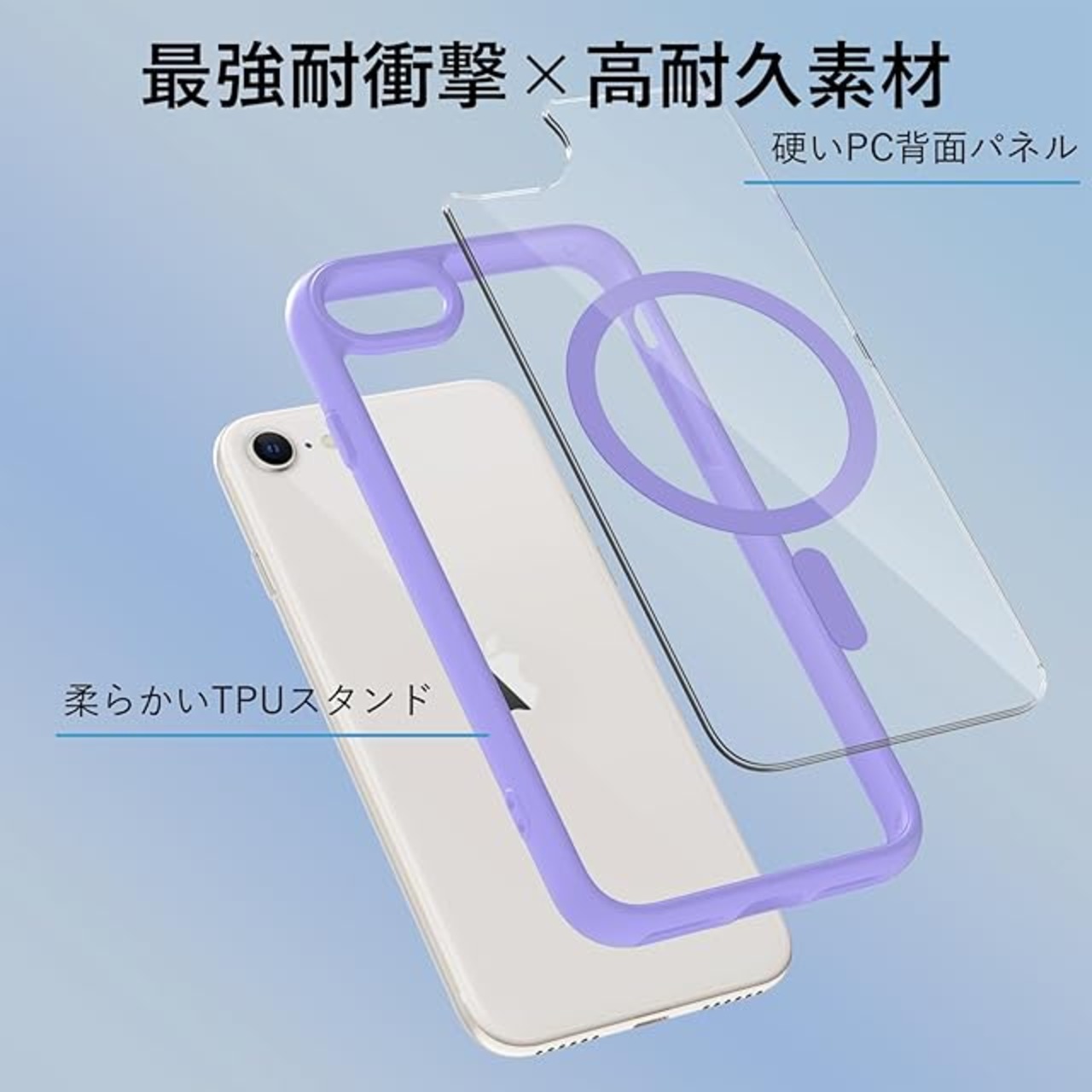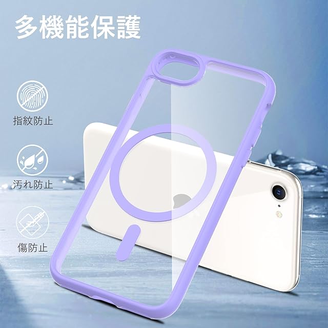 商品名:iPhone SE 第3世代 第2世代 ケース MagSafe対応 耐衝撃 クリア iPhone8 ケース マグネット搭載 PC iPhone7カバー 軽量 薄型 人気 マット感 黄ばみなし 米軍MIL規格 ワイアレス充電対応 EUMADOVE (紫色の傷防止, iPhone se se2 se3 8 7)