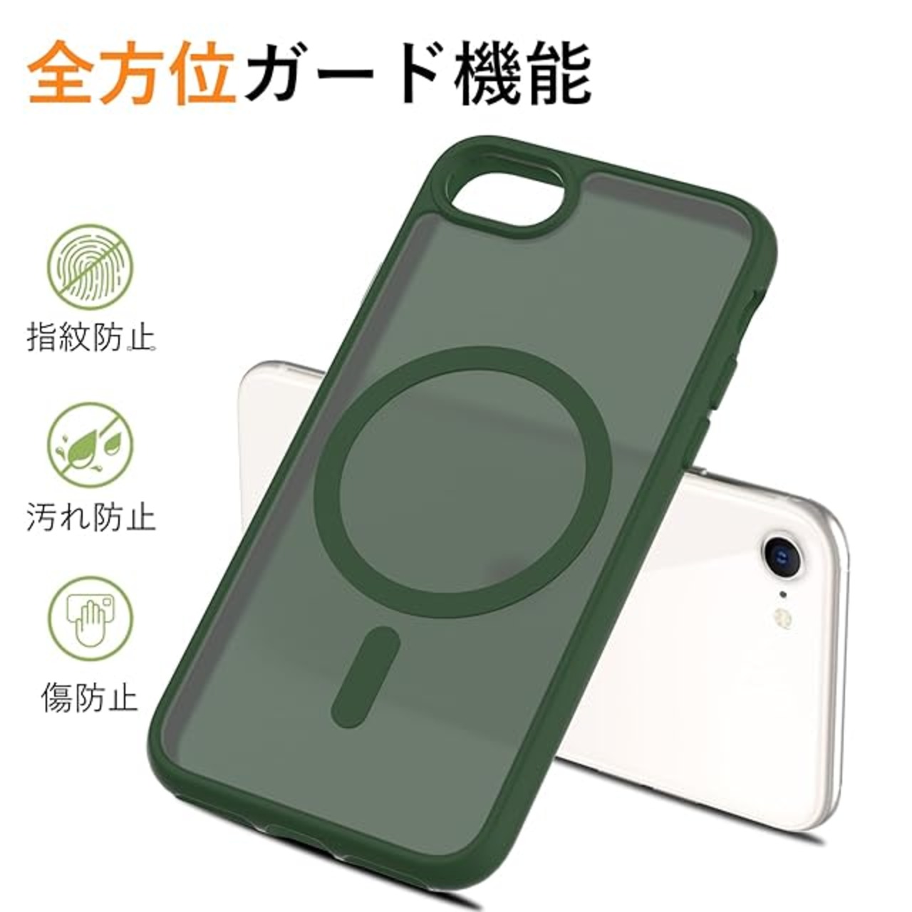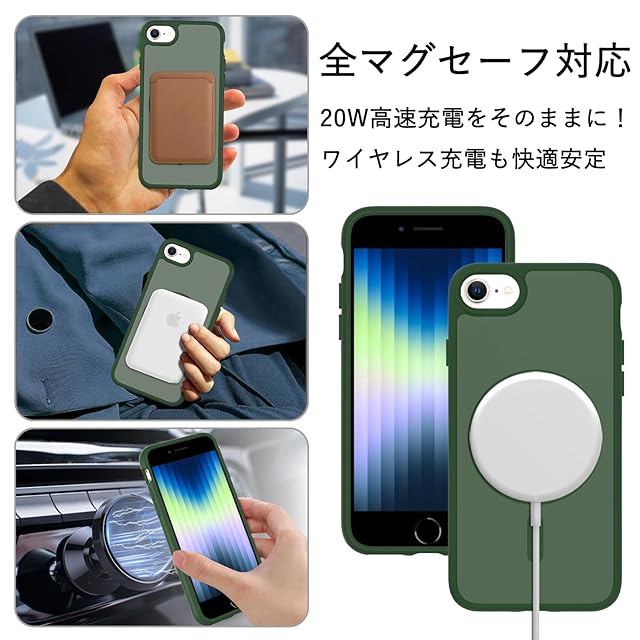 商品名:iPhone SE 第3世代 第2世代 ケース MagSafe対応 半透明 耐衝撃 iPhone8 ケース マグネット搭載 人気 PC iPhone7カバー 軽量 薄型 マット感 黄ばみなし 米軍MIL規格 ワイアレス充電対応 EUMADOVE (ダークグリーン, iPhone se se2 se3 8 7)