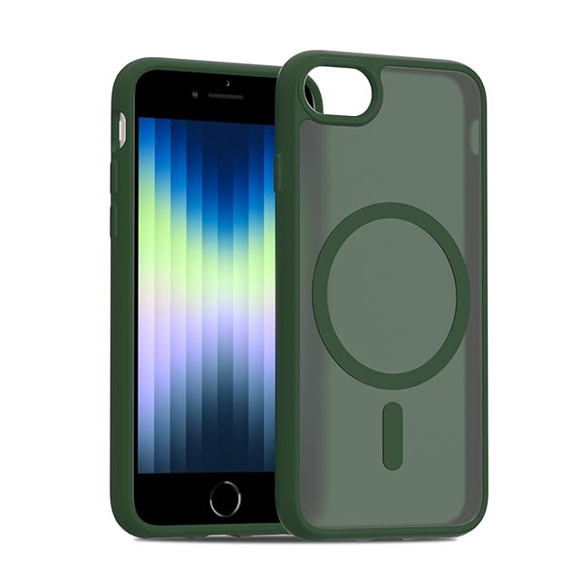 iPhone SE 第3世代 第2世代 ケース MagSafe対応 半透明 耐衝撃 iPhone8 ケース マグネット搭載 人気 PC iPhone7カバー 軽量 薄型 マット感 黄ばみなし 米軍MIL規格 ワイアレス充電対応 EUMADOVE (ダークグリーン, iPhone se se2 se3 8 7)
