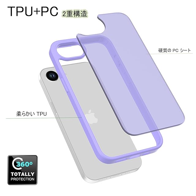 商品名:PinLiSheng iPhone 16e ケース マット感 半透明 耐衝撃 滑り止め SE4 ケース 指紋防止 米軍MIL規格 黄変防止 ワイヤレス充電対応 スマホケース(あさむらさき, iPhone 16e)