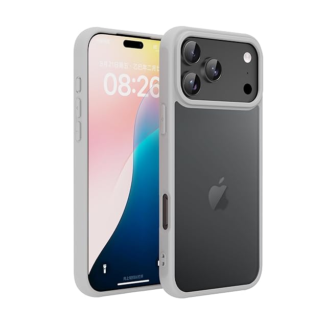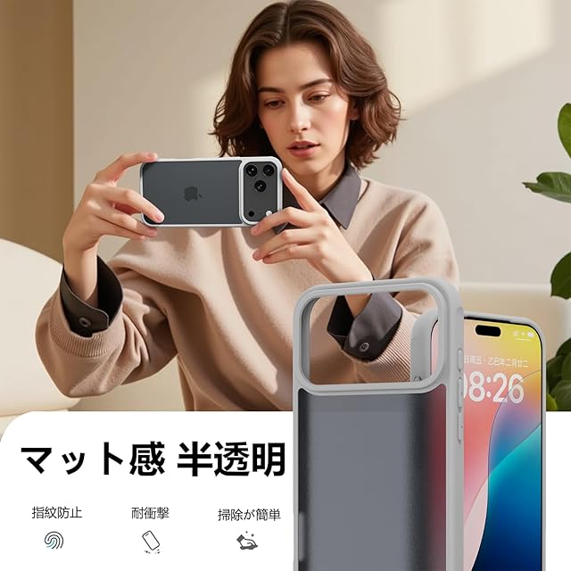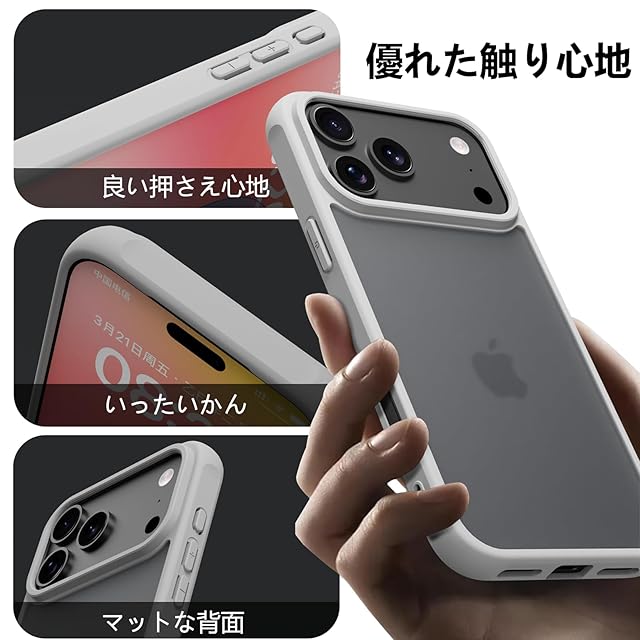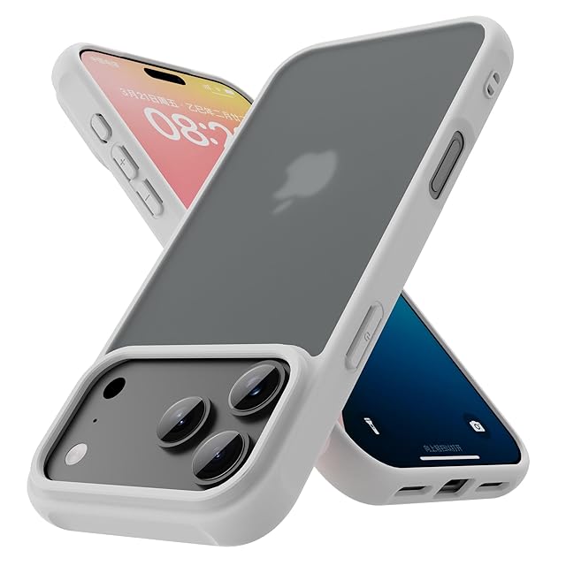 商品名:PinLiSheng iPhone 17 Pro ケース マット感 半透明 耐衝撃 滑り止め 指紋防止 米軍MIL規格 黄変防止 ストラップホール付き ワイヤレス充電対応 スマホケース グレー