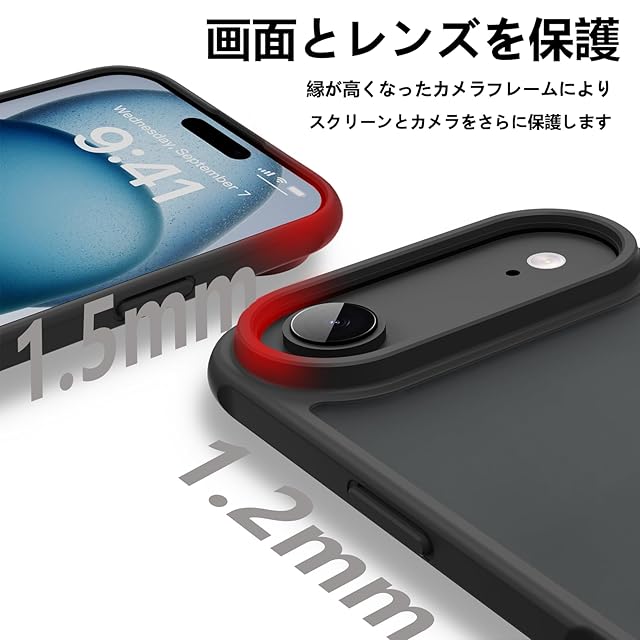 【軍用規格テスト準拠・全方位衝撃吸収】 MIL-STD-810G軍用規格の防塵テストに準拠した高い耐久性を誇ります。高硬度ポリカーボネート背面と衝撃吸収に優れた高弾性TPUバンパーの組み合わせが、あらゆる角度からの衝撃や日常の摩擦からiPhone17をしっかりガード。画面とカメラ周りはわずかに盛り上がった設計となっており、平置きしても液晶やレンズを傷から守ります。