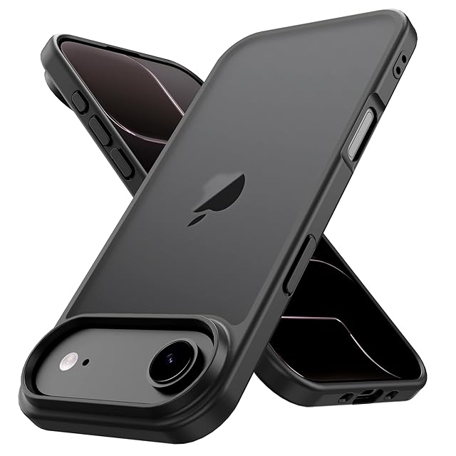 PinLiSheng iPhone Air ケース マット感 半透明 耐衝撃 滑り止め 指紋防止 米軍MIL規格 黄変防止 ストラップホール付き ワイヤレス充電対応 スマホケース ブラック