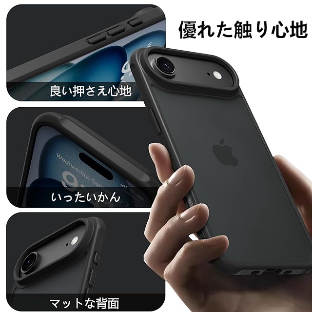 商品名:PinLiSheng iPhone Air ケース マット感 半透明 耐衝撃 滑り止め 指紋防止 米軍MIL規格 黄変防止 ストラップホール付き ワイヤレス充電対応 スマホケース ブラック