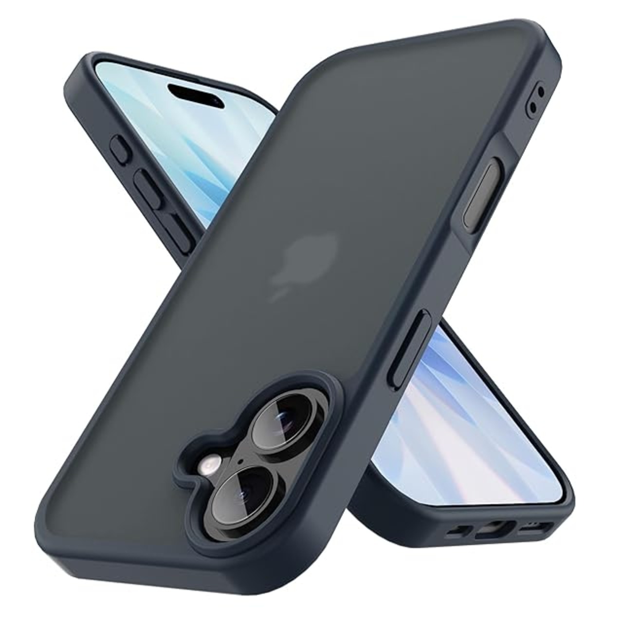 PinLiSheng iPhone 17 ケース マット感 半透明 耐衝撃 スマホケース アイホン 17 滑り止め 指紋防止 米軍MIL規格 黄変防止 ストラップホール付き ワイヤレス充電対応 6.3 インチ (濃い青, iPhone 17)