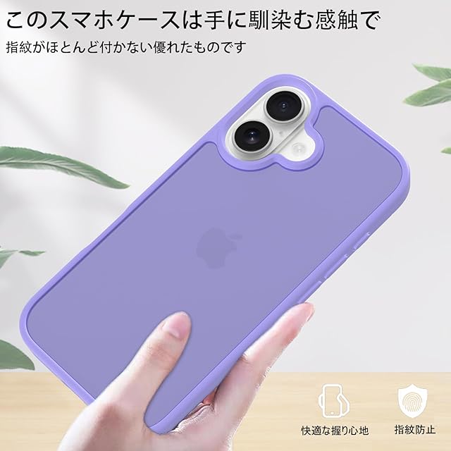 商品名:PinLiSheng iPhone16 ケース マット感 半透明 耐衝撃 滑り止め iPhone 16 ケース 指紋防止 米軍MIL規格 黄変防止 ワイヤレス充電対応 スマホケース iPhone 16 (あさむらさき)