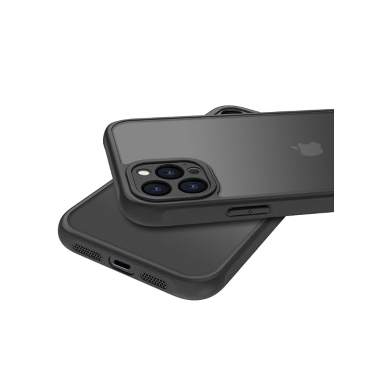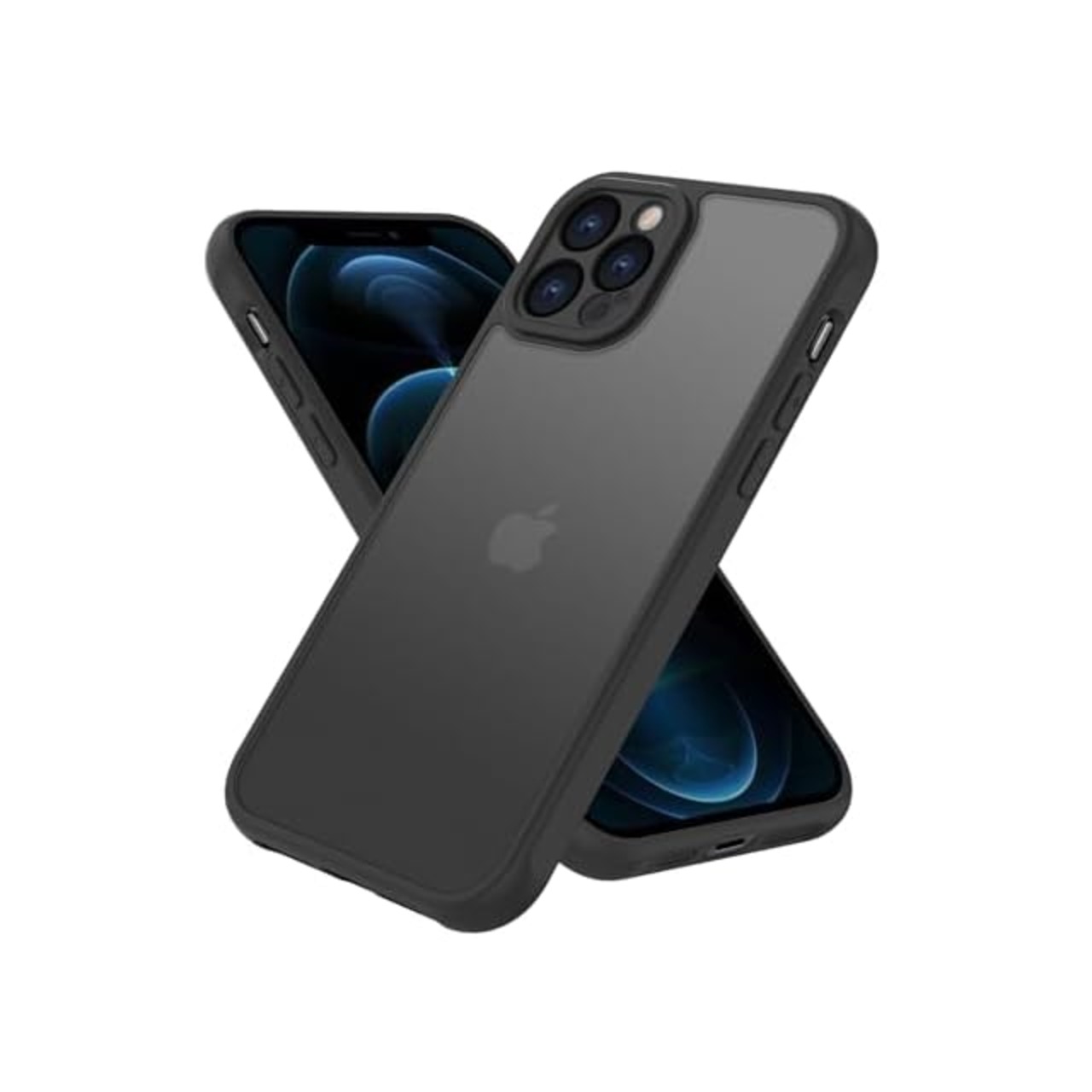 iPhone 12 Pro 用 ケース カバー 半透明 耐衝撃 滑り止め 指紋防止 米軍MIL規格 黄変防止 ストラップホール付き ワイヤレス充電対応 スマホケース アイフォン 12Pro ケース PinLiSheng (ブラック, iPhone12 Pro)