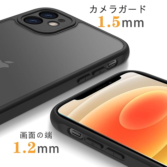 商品名:iPhone12mini 用 ケース 半透明 耐衝撃 滑り止め 指紋防止 米軍MIL規格 黄変防止 ストラップホール付き スマホケース あいふぉん 12mini ケース アイフォン12 mini PinLiSheng(ブラック, iPhone 12mini)