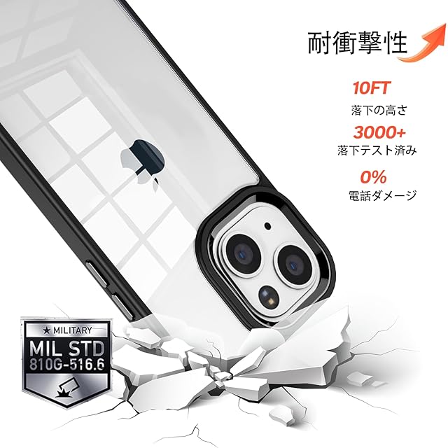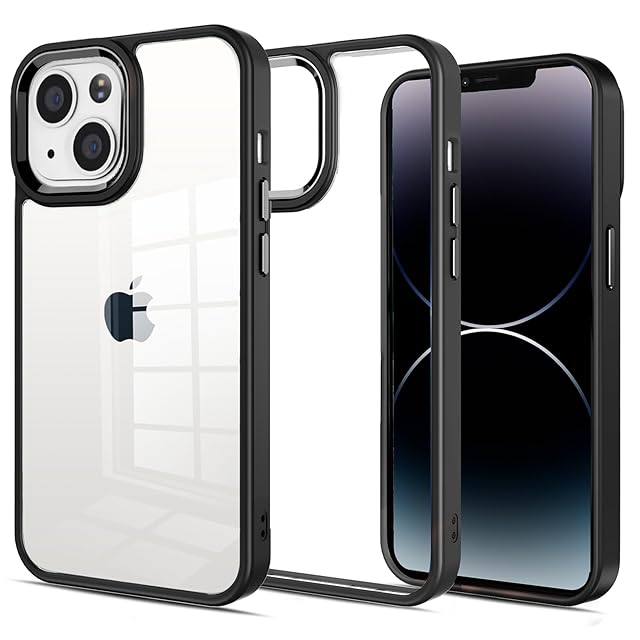 商品名:iPhone 14 用 ケース カバー 背面クリア 耐衝撃 滑り止め 指紋防止 米軍MIL規格 黄変防止 ストラップホール付き ワイヤレス充電対応 スマホケース 14 あいふぉん ケース アイフォン 14 PinLiSheng (ブラック, iPhone 14 用)