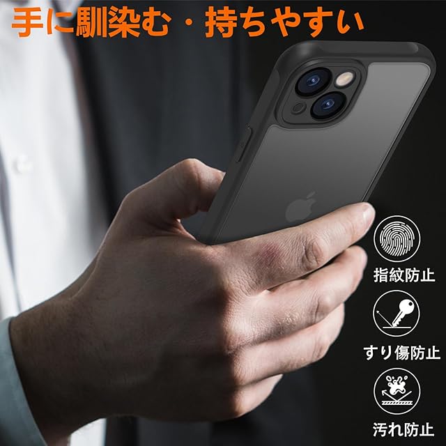 商品名:iPhone14 ケース マット 半透明 耐衝撃 スマホケース iphone14 カバー 軽量 指紋防止 米軍MIL規格 黄変防止 6.1インチ 対応 PinLiSheng(ブラック, iPhone 14)