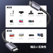 【HDMI2.1認証取得済み】UGREEN 8K HDMI2.1ケーブルは10K、8K@60Hz UHDビデオ、4K@240Hz、120Hz、2K、1080P、48ビット/ pxのHDR色深度、エンチャントされたオーディオリターンチャネル(eARC)など、さまざまな高ビデオ解像度とリフレッシュレートをサポートします。大画面でも高解像度のコンテンツをお楽しみいただける。また、シーンごと、またはフレームごとにコントラストや明るさを最適化するDynamicHDRにも対応します。