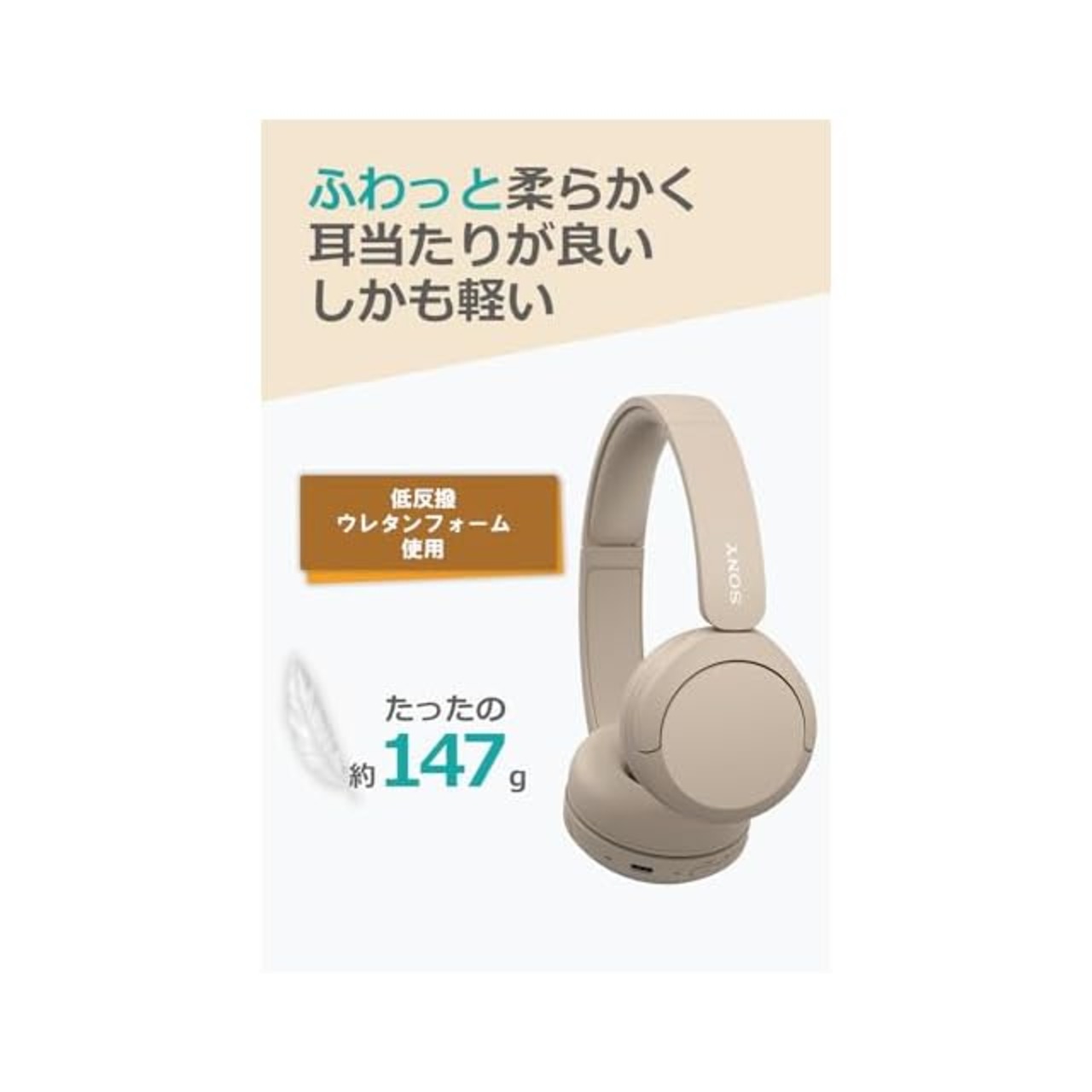 シワの少ない滑らかな低反撥ウレタンフォームのイヤーパッドを採用。柔らかく、耳当たりが良いイヤーパッドが軽量で快適な着け心地をもたらします。