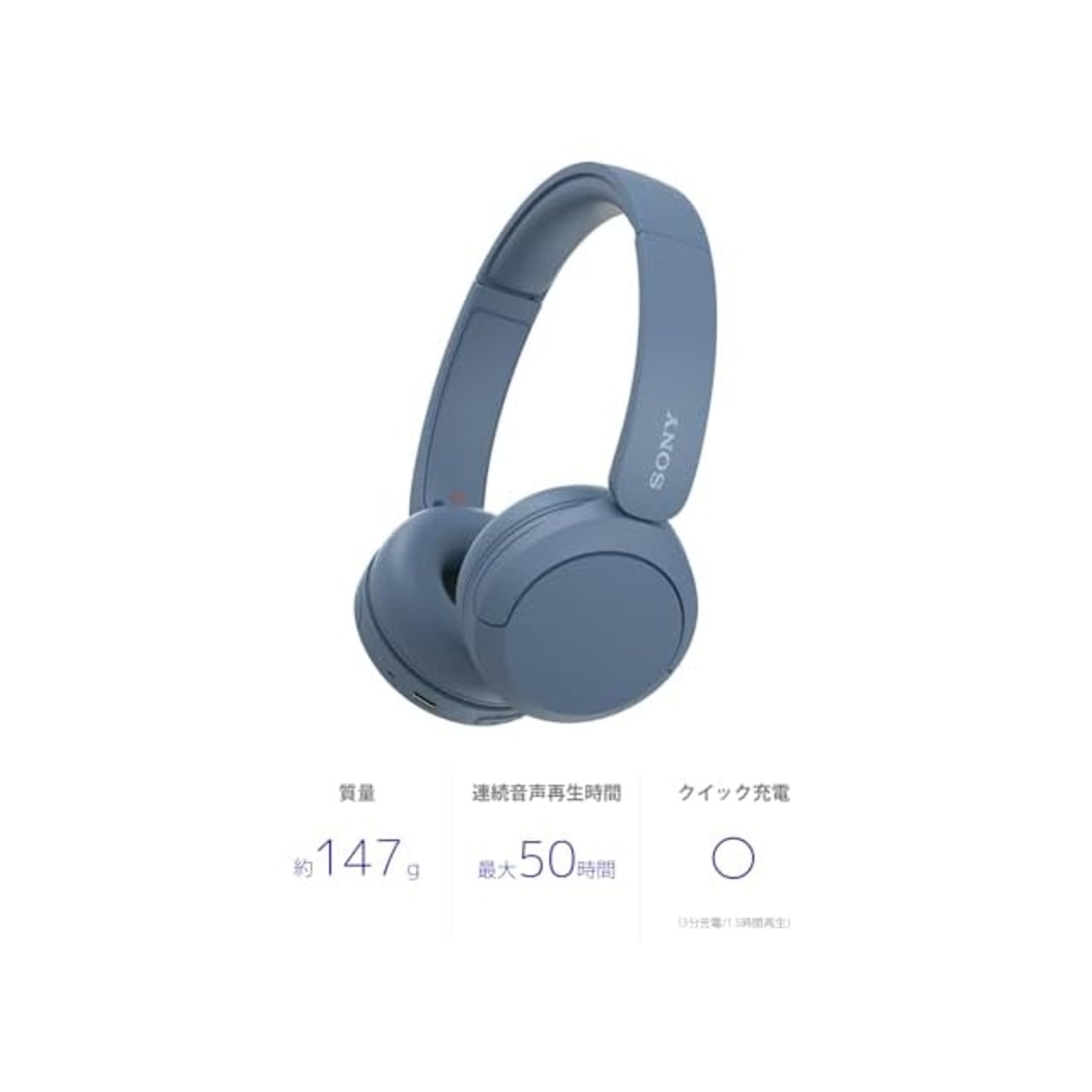 商品名:ソニー(SONY) ワイヤレスヘッドホン WH-CH520:Bluetooth対応/軽量設計 約147g/専用アプリ対応により好みの音質にカスタマイズできる「イコライザー」設定対応/ブルー WH-CH520 L 小