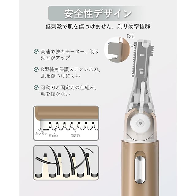 【肌に安全・剃り効率が高い】電動シェーバー 女性ヘッドは最新のR型鈍角設計で、肌に刺激がなく、やさしい。産毛剃り高速で強力な内蔵モーターと固定および可動ブレードの組み合わせにより、直接肌に触れることなく、引っ張ることなく効率的に毛を剃ることができ、最小の領域でも高速できれいに剃ることができます。傷や赤みを防ぎ、刺激を与えず、敏感肌の人は安全に使うことができますの顔剃り レディース。