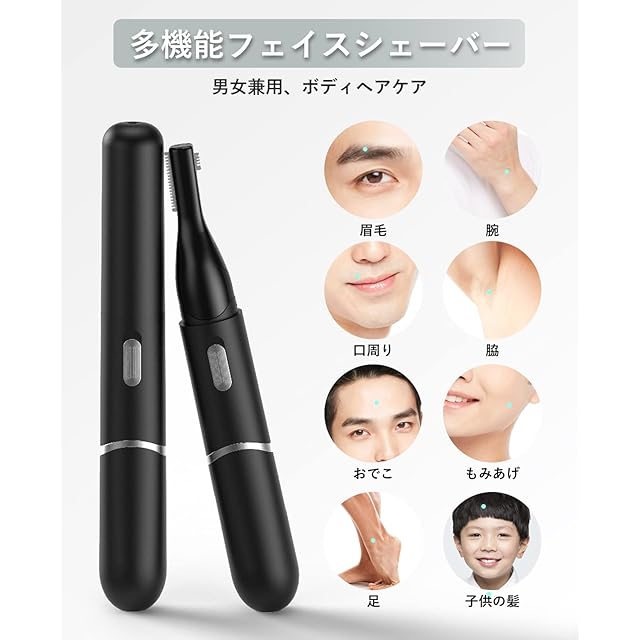 【優れた耐久性、1台で多機能ムダ毛処理 メンズ】産毛そり 顔 電動 レディース本体は耐久性のあるABS樹脂と精密鋼のステンレスを使用しており、環境にも配慮しています。シェイバー 男性用眉毛だけでなく、全身に使える耳毛処理です。耳、手、腕、脚、脇、ひげ、首の後ろ、ビキニエリア、顔など、全身のムダ毛や産毛に使用できます。 ムダ毛対策にお勧めの耳げカッター人気商品の一つです。 この眉シェーバーは、友人、上司、同僚、彼女へのプレゼントとして最適です。