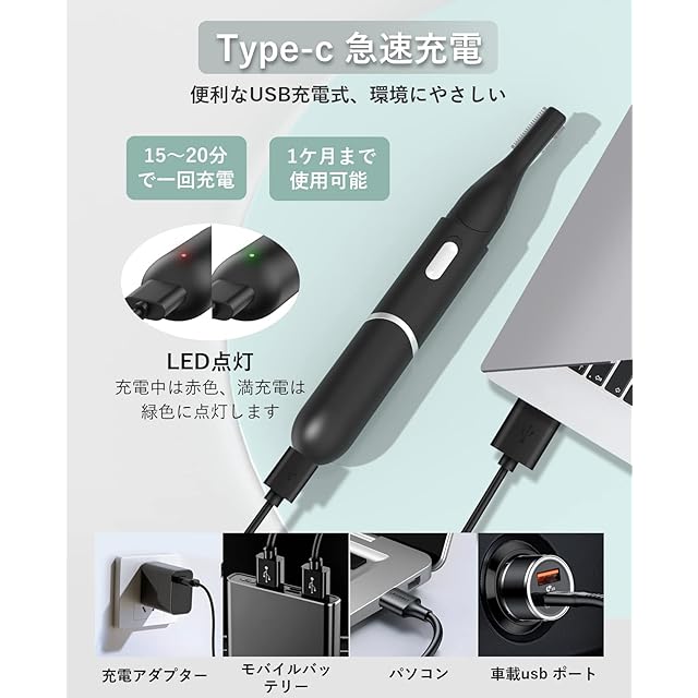 【USB急速充電・持ち運び便利】電動カミソリ電池を内蔵し、USBケーブルで簡単に充電でき、充電時間は15~20分で1~2ヶ月使用できるメンズシェーバーです。耳毛カッター電池交換の手間を省きながら、環境とエネルギーに配慮した高効率なシェービングを実現します。軽量・コンパクトで持ち運びに便利な産毛 シェーバーは、旅行や出張、キャンプ、オフィス、自宅など、様々な場所で使用でき、場所を選びません。眉毛剃りクールなブラックとエレガントなホワイトは、男性にも女性にもおすすめですよ。