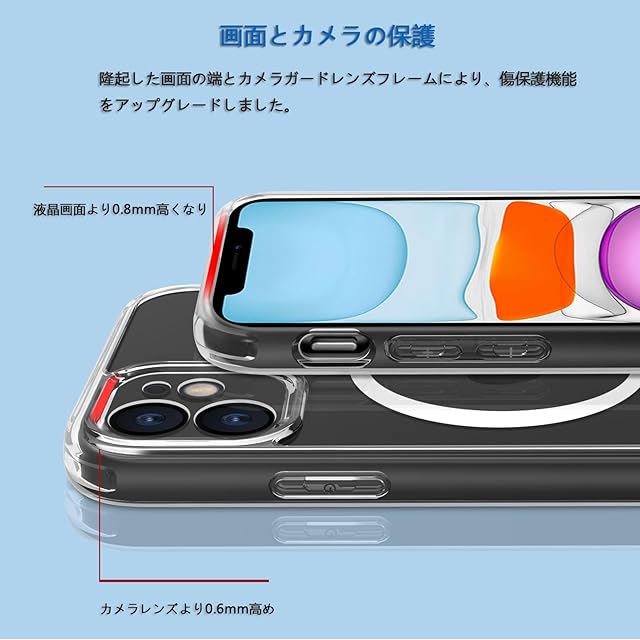 【対応機種】iPhone 専用です。精確にカット加工しているので、ボタンが押しやすく、ポートも使いやすくなっており、機能性に影響しません。<br> 【MagSafe対応・超強磁力】1,900 gの吸着力を備えた強力な内蔵磁石により、吸着力を高めて、安定感をアップしてエネ損失なしの快速ワイヤレス充電できる。様々な状況で安定した状態を保ちます。MagSafeバッテリー、MagSafeカードケース、MagSafeワイヤレス充電器、MagSafeリング、車載スタンドなど様々なMagSafeニーズに対応、Magsafeの便利さを満喫しましょう!<br> 【半透明・マットな質感】背面が透ける特性を汲み取ったデザインで、iPhoneのかっこいいリンゴロゴが薄っり見えて、高級感と神秘感が溢れている。背面のポリカーボネートは耐久性や耐摩耗性に優れ、長く使っても綺麗に見え。スマホに近い感覚を味わうことができ。<br> 【高耐衝撃性・カメラ保護】免震構造である高弾力バンパーと耐震構造である丈夫なポリカーボネート背面で組み合わせて、バランスが良く落下衝撃を本体に伝えにくくなる。隆起エッジにより、スマホを置いた時にスクリーンやカメラが擦れにくくなり、傷から保護することができます。<br> 【スリム・軽量】この握りやすいケースは、厚さたった1.2 cmなので、スマホに近い感覚を味わうことができ、ケースをつけたままコネクタへの接続が可能で。<br> 【品質】iPhone ケースを安心してお使いいただくために、当店は製品に関する品質を提供します。製品に不具合がある場合、注文履歴画面より出品者にご連絡いただき、お問い合わせ内容に応じて、交換などの対応が可能です。<br>
