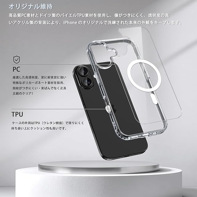 【PC背面・黄変防止】高品質のPC素材とドイツ製のバイエルTPU素材を使用し、傷がつきにく透明度の高いPC背面がiPhone 17の洗練された本来の美しさを保ちます。