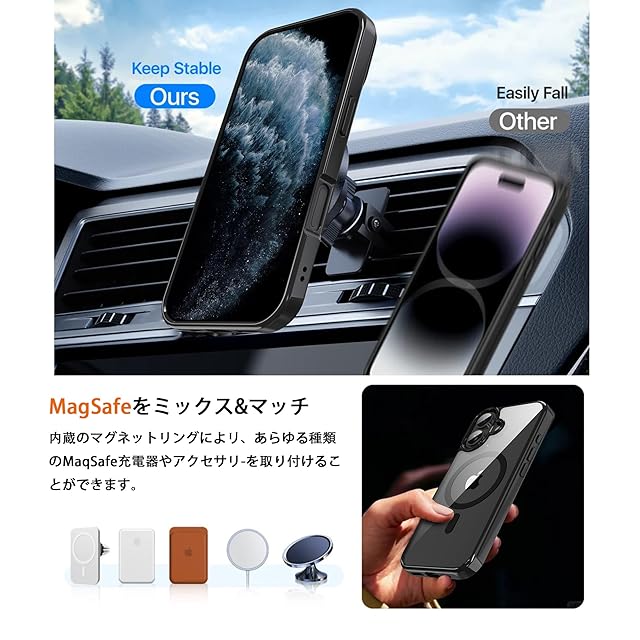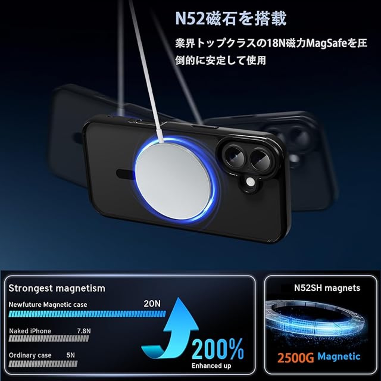 【対応機種】iPhone 17 専用です。精確にカット加工しているので、ボタンが押しやすく、ポートも使いやすくなっており、機能性に影響しません。<br> 【MagSafe対応・超強磁力】1,900 gの吸着力を備えた強力な内蔵磁石により、吸着力を高めて、安定感をアップしてエネ損失なしの快速ワイヤレス充電できる。様々な状況で安定した状態を保ちます。MagSafeバッテリー、MagSafeカードケース、MagSafeワイヤレス充電器、MagSafeリング、車載スタンドなど様々なMagSafeニーズに対応、Magsafeの便利さを満喫しましょう!<br> 【半透明・マットな質感】背面が透ける特性を汲み取ったデザインで、iPhoneのかっこいいリンゴロゴが薄っり見えて、高級感と神秘感が溢れている。背面のポリカーボネートは耐久性や耐摩耗性に優れ、長く使っても綺麗に見え。スマホに近い感覚を味わうことができ。<br> 【高耐衝撃性・カメラ保護】免震構造である高弾力バンパーと耐震構造である丈夫なポリカーボネート背面で組み合わせて、バランスが良く落下衝撃を本体に伝えにくくなる。隆起エッジにより、スマホを置いた時にスクリーンやカメラが擦れにくくなり、傷から保護することができます。<br> 【スリム・軽量】この握りやすいケースは、厚さたった1.2 cmなので、スマホに近い感覚を味わうことができ、ケースをつけたままコネクタへの接続が可能で。<br> 【品質】iPhone ケースを安心してお使いいただくために、当店は製品に関する品質を提供します。製品に不具合がある場合、注文履歴画面より出品者にご連絡いただき、お問い合わせ内容に応じて、交換などの対応が可能です。<br>