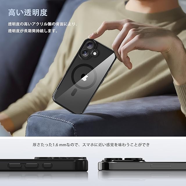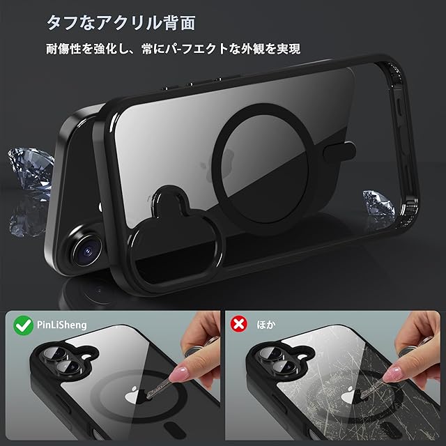 PinLiSheng iPhone 17 用 ケース MagSafe対応 ・3倍米軍MIL規格 PC背面TPUバンパー 耐衝撃 黄変防止 指紋防止 アイフォン17 マグネット搭載 マグセーフ対応 耐衝撃 SGS認証 薄型 ストラップホール付き いPhone17 対応6.3インチ(クリアブラック, Iphone 17)