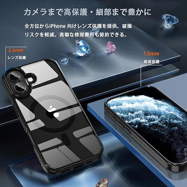 商品名:PinLiSheng iPhone 17 用 ケース MagSafe対応 ・3倍米軍MIL規格 PC背面TPUバンパー 耐衝撃 黄変防止 指紋防止 アイフォン17 マグネット搭載 マグセーフ対応 耐衝撃 SGS認証 薄型 ストラップホール付き いPhone17 対応6.3インチ(クリアブラック, Iphone 17)