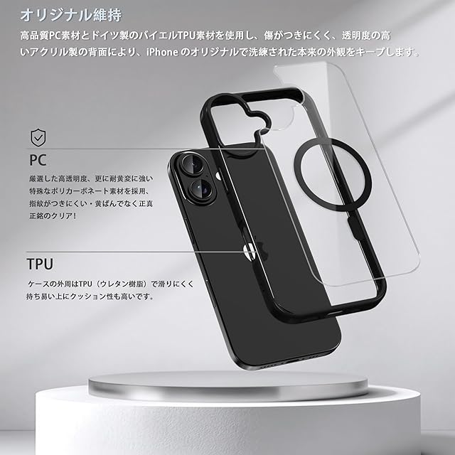 【PC背面・黄変防止】高品質のPC素材とドイツ製のバイエルTPU素材を使用し、傷がつきにく透明度の高いPC背面がiPhone 17の洗練された本来の美しさを保ちます。