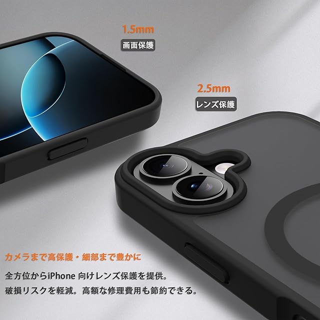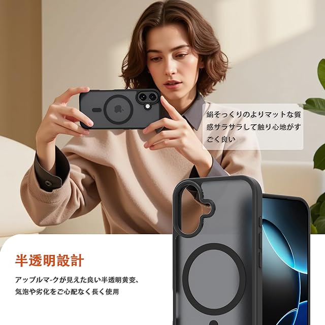 【対応機種】iPhone 17 専用です。精確にカット加工しているので、ボタンが押しやすく、ポートも使いやすくなっており、機能性に影響しません。<br> 【MagSafe対応・超強磁力】1,900 gの吸着力を備えた強力な内蔵磁石により、吸着力を高めて、安定感をアップしてエネ損失なしの快速ワイヤレス充電できる。様々な状況で安定した状態を保ちます。MagSafeバッテリー、MagSafeカードケース、MagSafeワイヤレス充電器、MagSafeリング、車載スタンドなど様々なMagSafeニーズに対応、Magsafeの便利さを満喫しましょう!<br> 【半透明・マットな質感】背面が透ける特性を汲み取ったデザインで、iPhoneのかっこいいリンゴロゴが薄っり見えて、高級感と神秘感が溢れている。背面のポリカーボネートは耐久性や耐摩耗性に優れ、長く使っても綺麗に見え。スマホに近い感覚を味わうことができ。<br> 【高耐衝撃性・カメラ保護】免震構造である高弾力バンパーと耐震構造である丈夫なポリカーボネート背面で組み合わせて、バランスが良く落下衝撃を本体に伝えにくくなる。隆起エッジにより、スマホを置いた時にスクリーンやカメラが擦れにくくなり、傷から保護することができます。<br> 【スリム・軽量】この握りやすいケースは、厚さたった1.2 cmなので、スマホに近い感覚を味わうことができ、ケースをつけたままコネクタへの接続が可能で。<br> 【品質】iPhone ケースを安心してお使いいただくために、当店は製品に関する品質を提供します。製品に不具合がある場合、注文履歴画面より出品者にご連絡いただき、お問い合わせ内容に応じて、交換などの対応が可能です。<br>