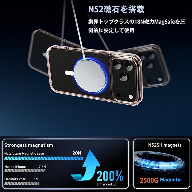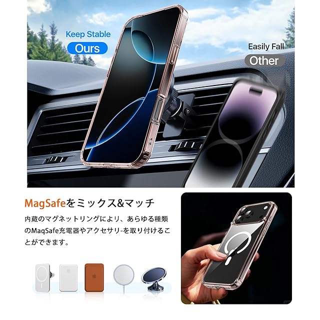 【MagSafe対応・超強磁力】1,900 gの吸着力を備えた強力な内蔵磁石により、吸着力を高めて、安定感をアップしてエネ損失なしの快速ワイヤレス充電できる。様々な状況で安定した状態を保ちます。MagSafeバッテリー、MagSafeカードケース、MagSafeワイヤレス充電器、MagSafeリング、車載スタンドなど様々なMagSafeニーズに対応、Magsafeの便利さを満喫しましょう!
