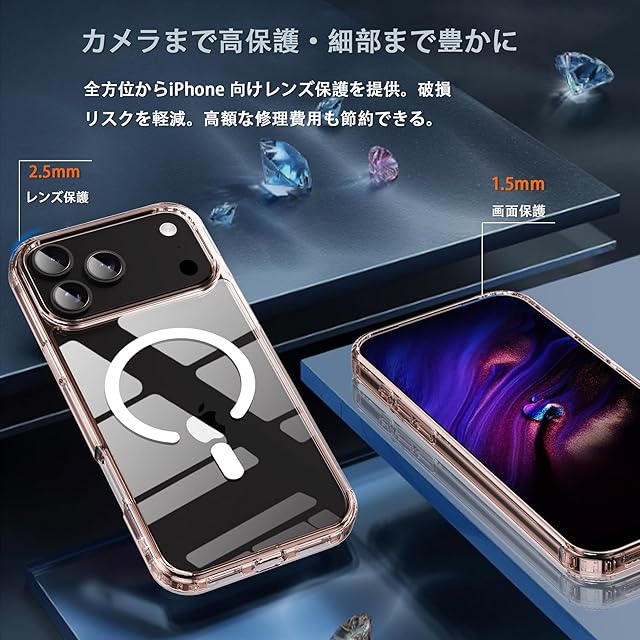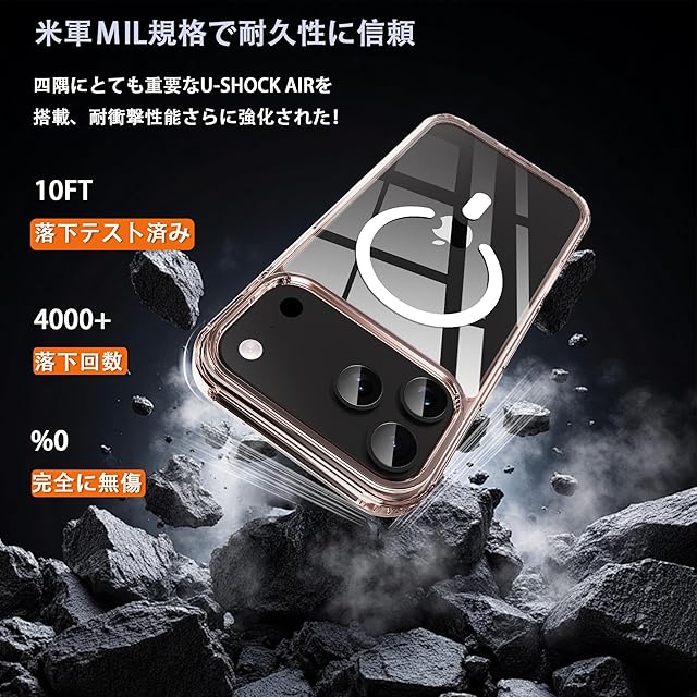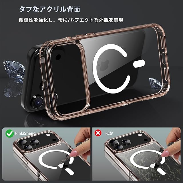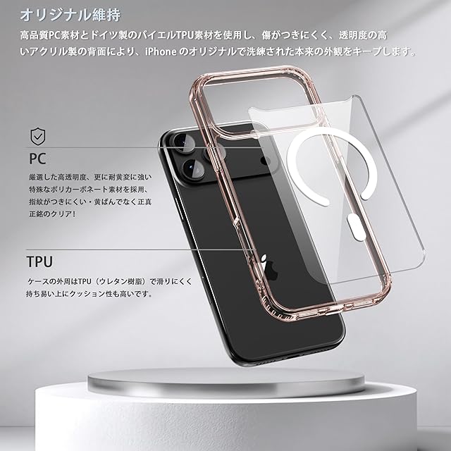 商品名:Iphone 17 PRO ケース スマホカバー マグネット搭載 ワイヤレス充電 耐衝撃 指紋防止 滑り止め 米軍MIL規格・Magsafe対応 アイフォン17 PRO用カバー インチ PinLiSheng (ピンク, Iphone 17 PRO)