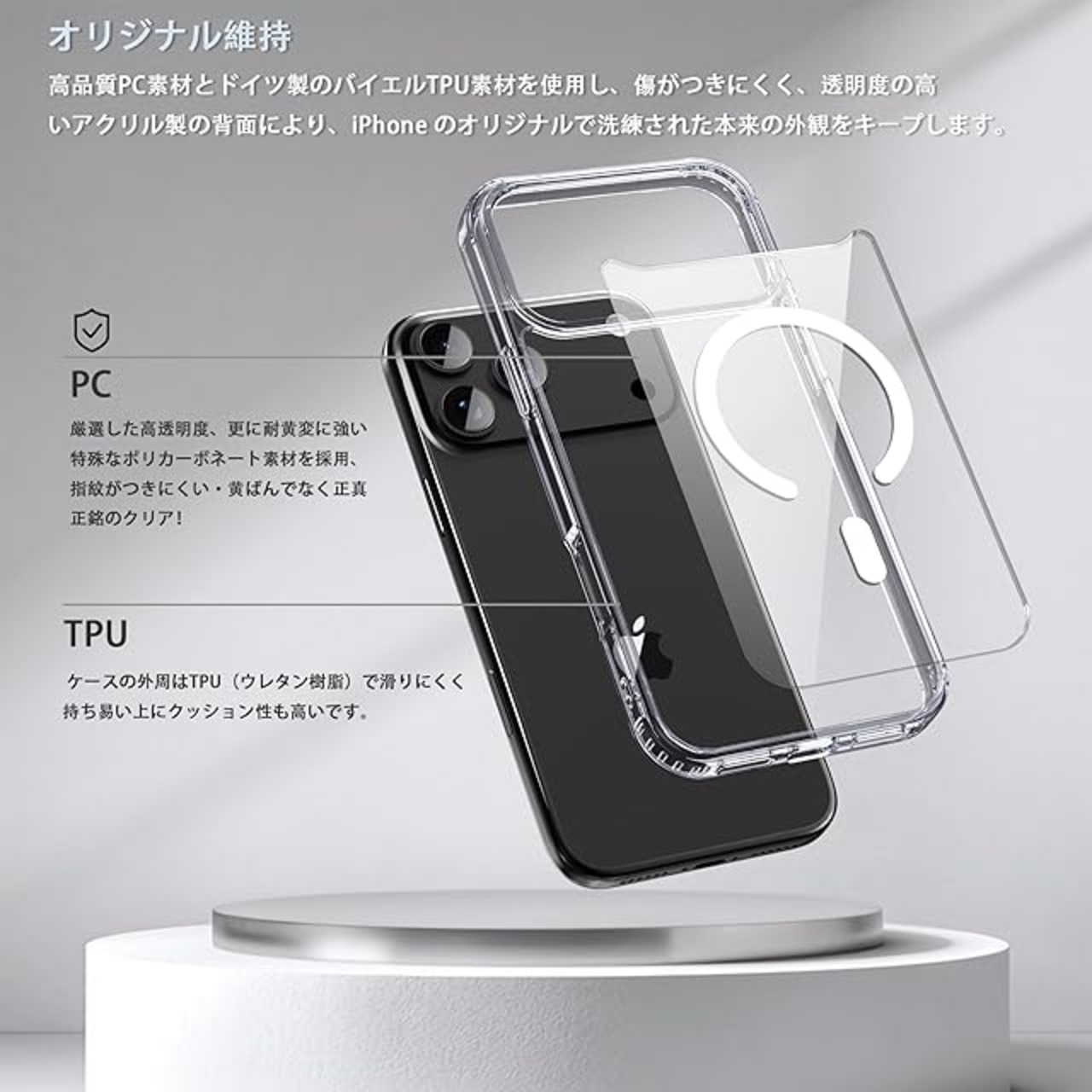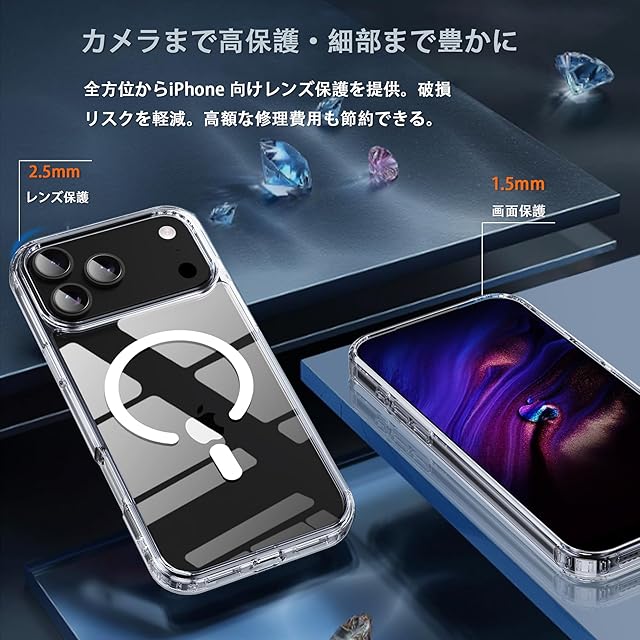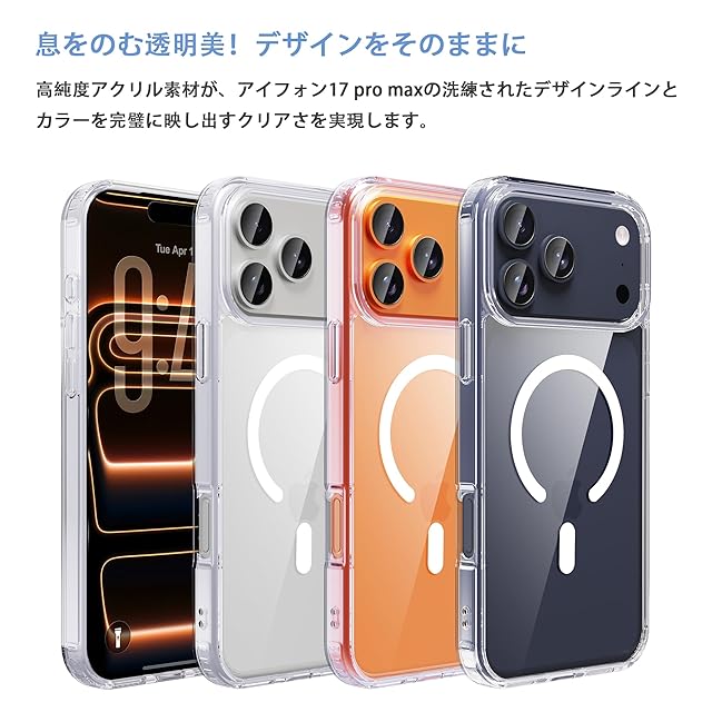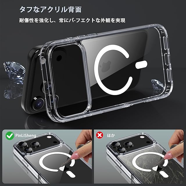 商品名:iPhone 17 PRO MAX ケース スマホカバー マグネット搭載 ワイヤレス充電 耐衝撃 指紋防止 滑り止め 米軍MIL規格・Magsafe対応 アイフォン17 PRO MAX 用カバー 6.9インチ PinLiSheng (クリア, Iphone 17 PRO MAX)