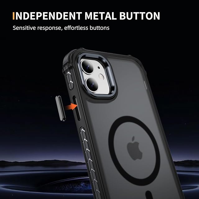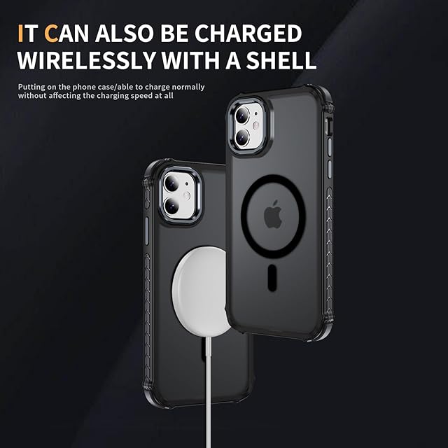 iPhone 11 ケース スマホカバー マット半透明 マグネット搭載 ワイヤレス充電 耐衝撃 指紋防止 滑り止め 米軍MIL規格・Magsafe対応 アイフォン11 用カバー インチ PinLiSheng (グレイブラック, iphone 11)