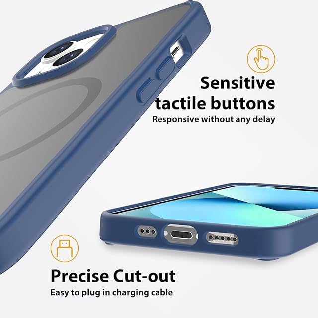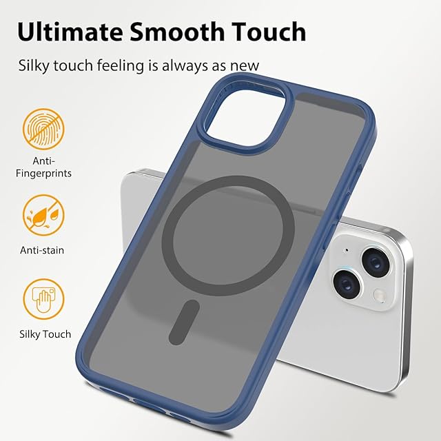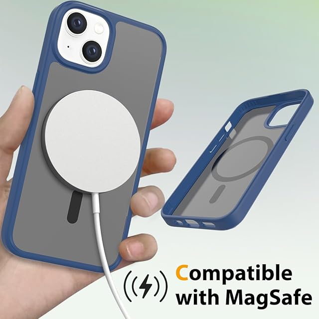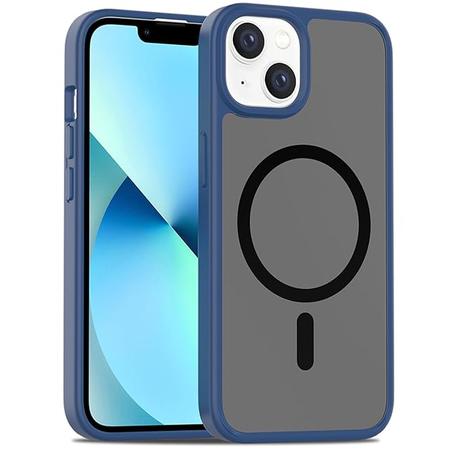 iPhone 13 ケース iphone 14 ケース iphone 13/14 ケース スマホカバー マット半透明 マグネット搭載 ワイヤレス充電 耐衝撃 指紋防止 滑り止め 米軍MIL規格・Magsafe対応 アイフォン13/14 用カバー インチ PinLiSheng (ブルー, iPhone 13)