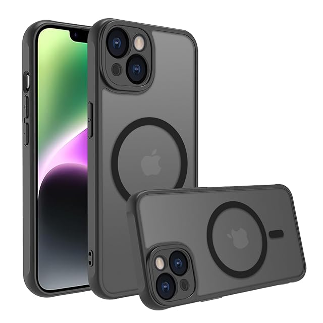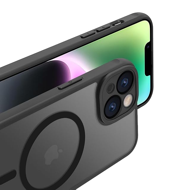 iphone 14 ケース スマホカバー マット半透明 マグネット搭載 ワイヤレス充電 耐衝撃 指紋防止 滑り止め 米軍MIL規格・Magsafe対応 アイフォン 14 用カバー インチ PinLiSheng (ブラック, iPhone 14)