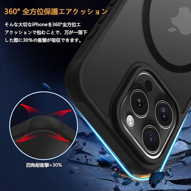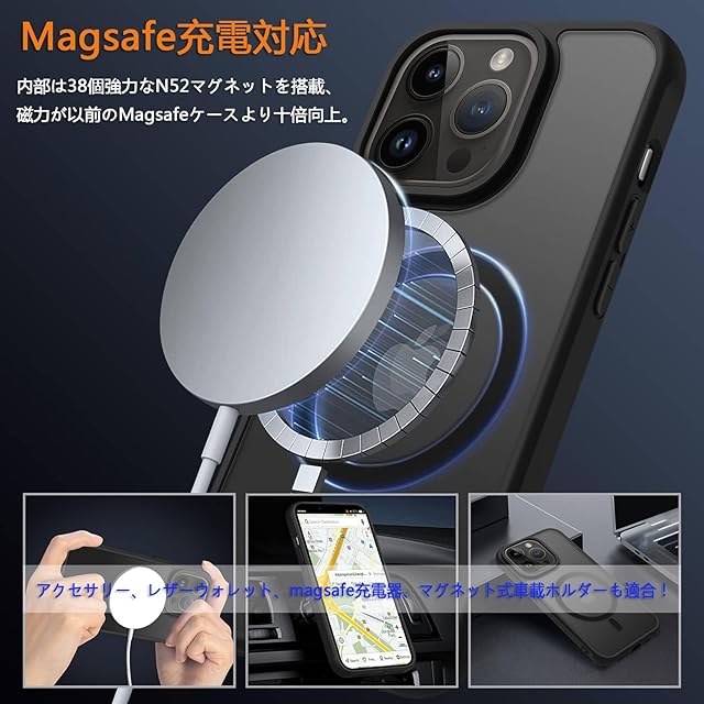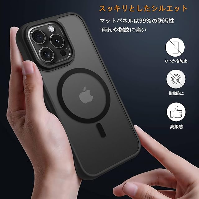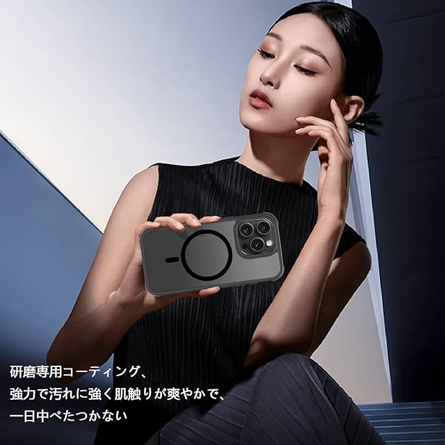 iphone 16 pro ケース スマホカバー マット半透明 マグネット搭載 ワイヤレス充電 耐衝撃 指紋防止 滑り止め 米軍MIL規格・Magsafe対応 アイフォン16 pro 用カバー インチ PinLiSheng (ブラック, iphone 16 pro)